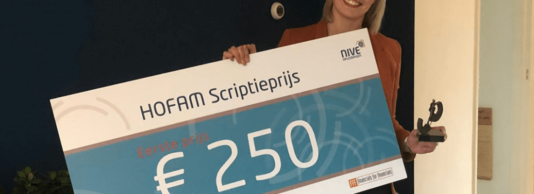Door de aangescherpte corona-maatregelen kon de diploma-uitreiking dit najaar niet doorgaan. Maar we konden gelukkig wel voor de 31e keer de HOFAM ® scriptieprijs uitreiken! Het is een prijs die we halfjaarlijks uitreiken aan degene die de beste scriptie heeft geschreven als afronding van de HOFAM opleiding tot Qualified Controller (QC).