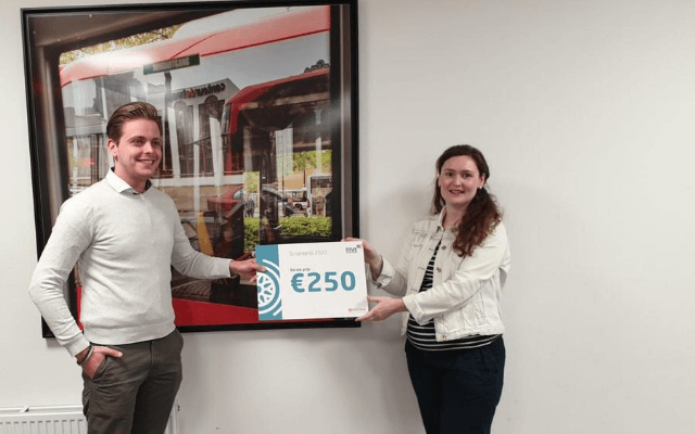 Caroline en Chantal reden donderdag 23 juli, met taart én een cheque op de achterbank, naar Arriva in Uden. Met trots mochten zij de 30e HOFAM ® scriptieprijs uitreiken aan Ieze van Haaren, Controller regio zuid bij Arriva Nederland. Zijn scriptie met als titel “De Finance functie van de toekomst binnen Arriva Nederland”, werd door scriptiedocenten én de examencommissie als beste beoordeeld.